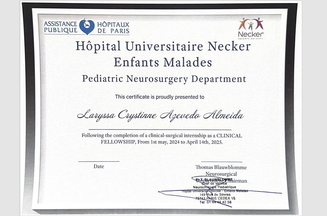 - Fellowship em Neurocirurgia Pediátrica Hospital Necker - Paris